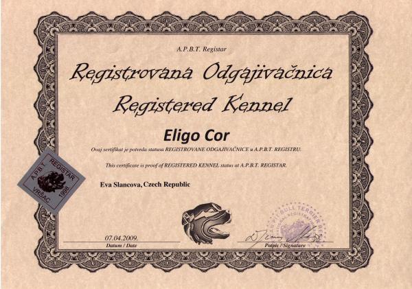 Telefon: +420 776 011 435 Zodpovědná osoba: Eligo Cor Kennel www: eligocor.kennel-apbt.com/ Mail: | Certifikát CHS: Zobrazit Certifikát ::: Plánujeme vrh: 01.01.1970 Hodnocení: 54 bodů ze 100 |