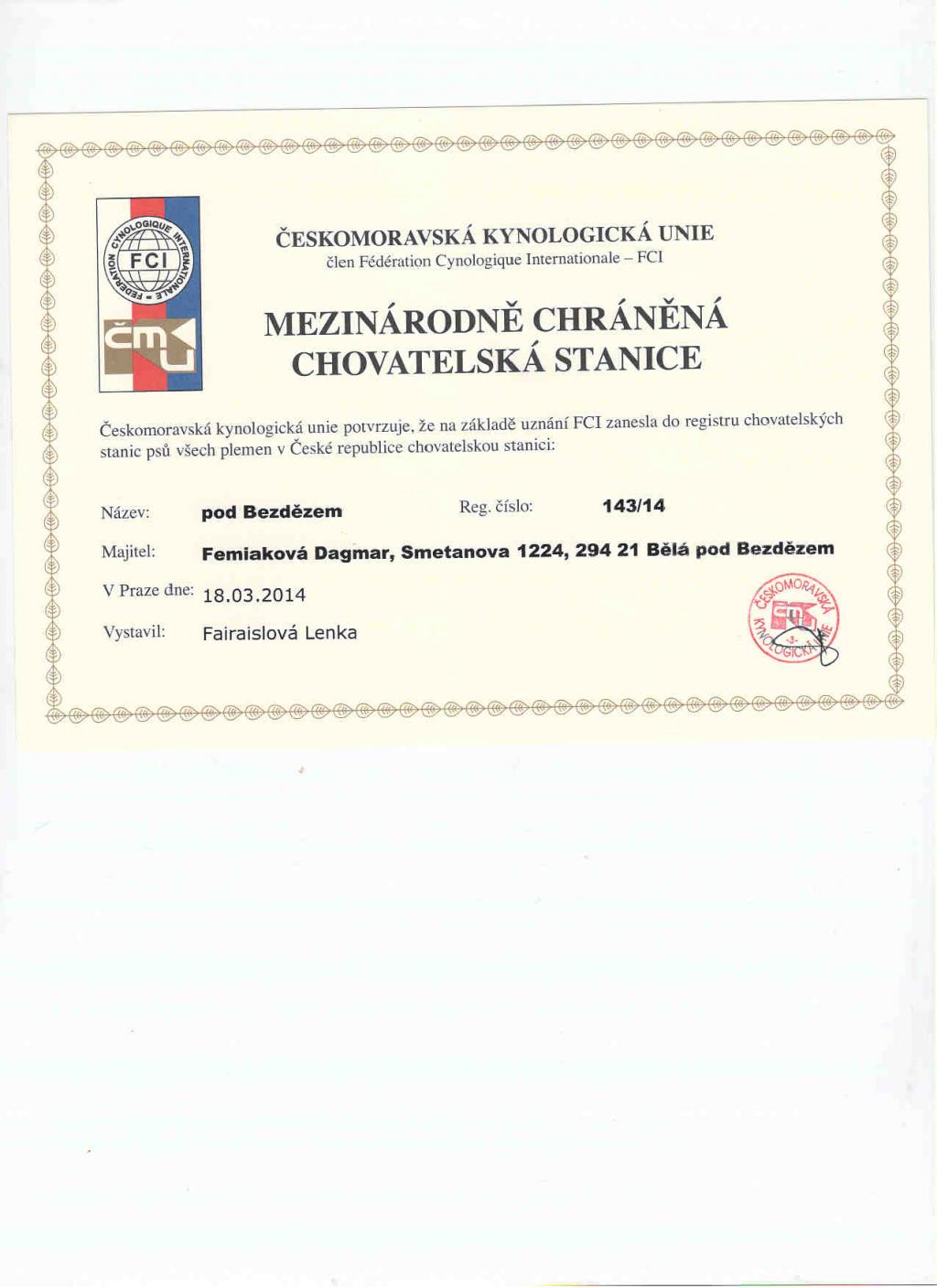 Adresa: Bělá pod Bezdězem Telefon: +420777615865 Zodpovědná osoba: Dagmara Mail: | Reg. číslo CHS: 143/14 Certifikát CHS: Zobrazit Certifikát ::: Plánujeme vrh: 01.01.1970 Hodnocení: 56 bodů ze 100 |