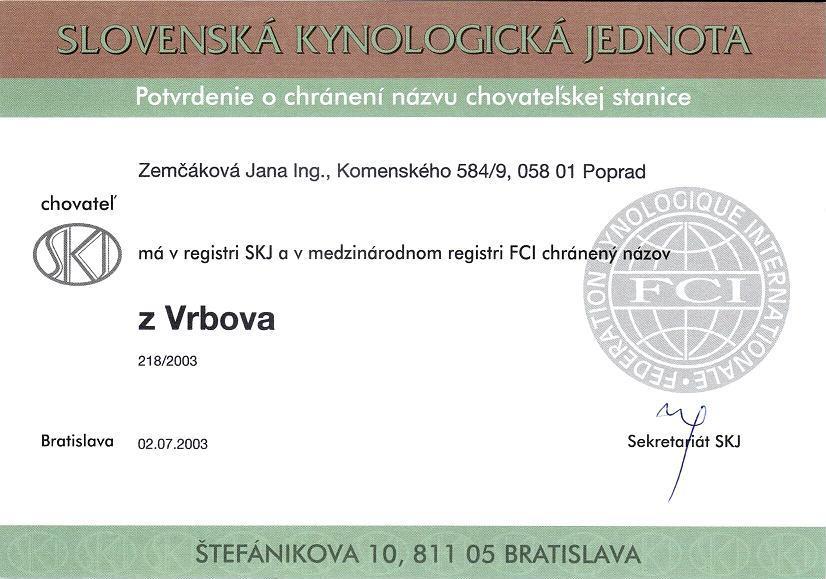 Reg. číslo CHS: 218/2003 Certifikát CHS:Zobrazit Certifikát ::: Plánujeme vrh: 03.06.2010 Hodnocení: 90 bodů ze 100