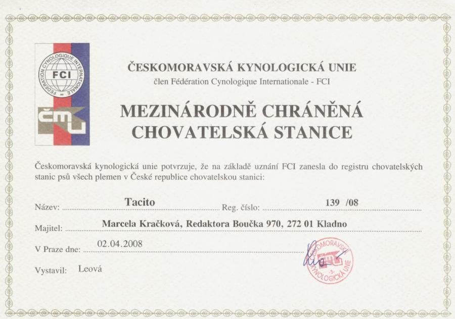 Adresa: Redaktora Boučka 970, Kladno Telefon: +420 605281166 Zodpovědná osoba: Marcela Kračkova www: www.tacito.wz.cz Mail: | Reg. číslo CHS: 139/08 Certifikát CHS: Zobrazit Certifikát ::: Plánujeme vrh: 01.01.1970 Hodnocení: 70 bodů ze 100 |