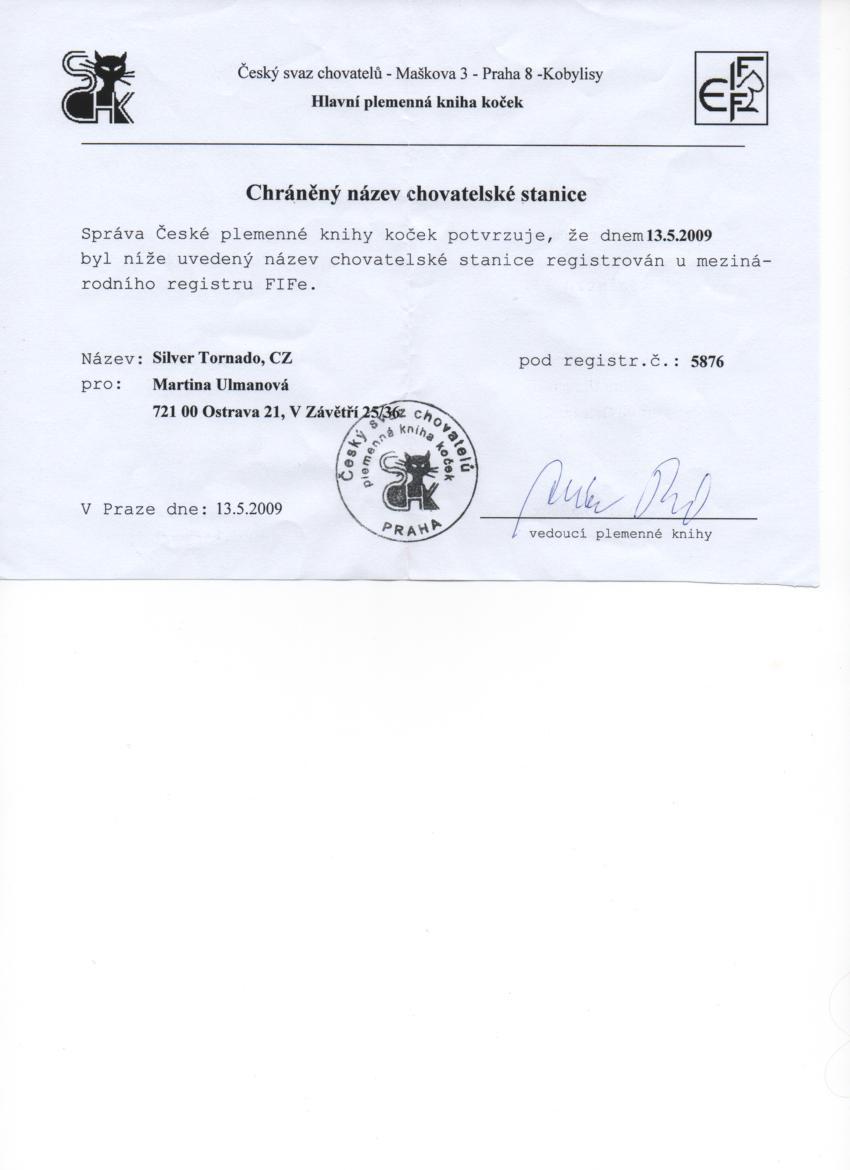 O nás:CHOVATELSKÁ STANICE SILVER TORNADO, CZ je registrovaná v mezinárodním registru FIFe od roku 2009. Specializujeme se na chov perských koček stříbřitě a zlatě stínovaných, dříve známých pod názvem perská činčila. První chovnou kočku Leidy Daisy Ania Mine, Per ns 11 jsme si pořídili v roce 2008 a k ní jsme vybrali krycího kocourka Baronesse Veneta,Per ns 11. Z chovatelských stanic v Německu jsme dovezli krycího kocoura PER ns 12 - Mr.Bombastica vom Koboldland a kočičky PER ns 12 Baby Sue vom Ilztal a PER ny 11 Philomea vom Koboldland.
