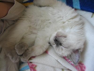 O plemeni: Ragdoll je inteligentní velká a silná kočka s polodlouhou srstí a nádherně modrýma očima. Má velmi mírnou, přítulnou a klidnou povahu. Je velmi společenská, mazlivá, závislá na svém člověku. Ragdollové dokáží aportovat a následovat člověka jako pejsek. Dobře se sžívá s jinými zvířaty. Je trpělivá a nenáročná na péči.