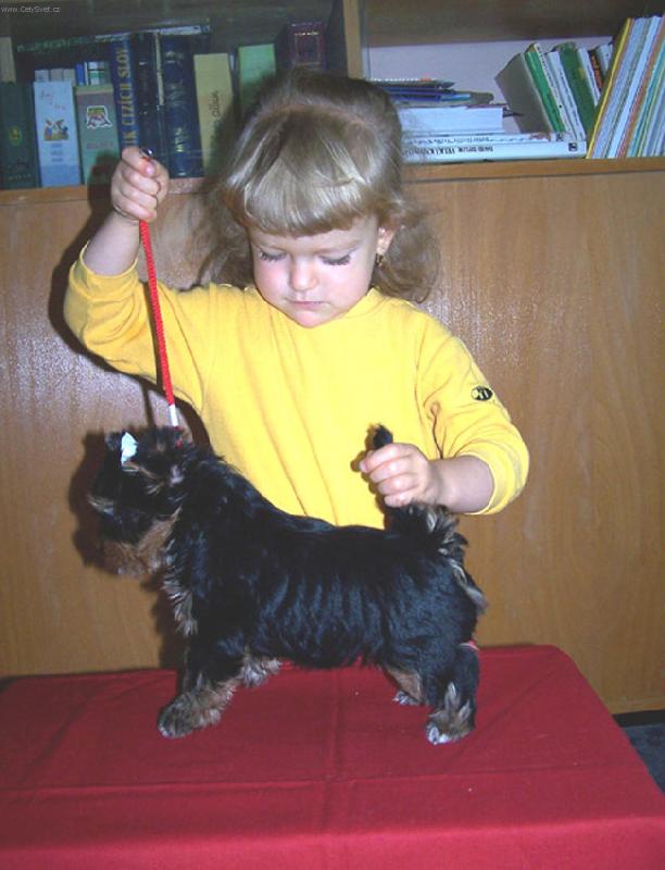 2,5 letá kynoložka Kačenka a 8 týdenní yorkšír Gentleman Grey Pražský Cyrano
