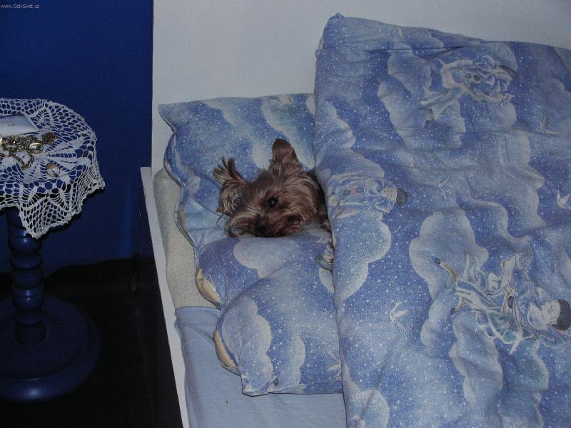 Foto: malý Johny v naší velké posteli