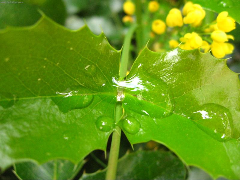 Foto: Kapky vody na mahonii