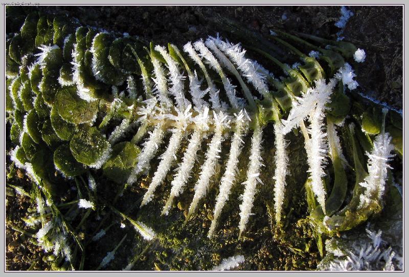 Namrzlá rostlina ranní jinovatkou