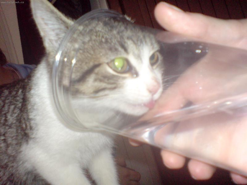 I kočka umí pít ze skleničky