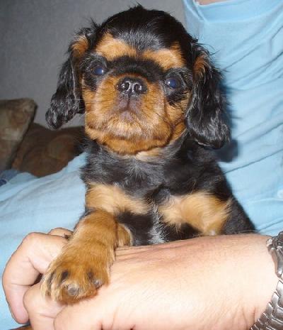 O plemeni:KING CHARLES ŠPANĚL - malé společenské plemeno 9.skupiny FCI, menší příbuzný Kavalír King Charles Španěla se kterým si ho lidé často pletou. KING CHARLES ŠPANĚL a KAVALÍR KING CHARLES ŠPANĚL se vyskytují ve stejných čtyřech barevných variantách , ale jsou to dvě různá i když příbuzná plemena, což mnoho lidí kvůli jejich podobným jménům vůbec netuší. Ti kteří to vědí, většinou považují Kavalíra za toho "normálního psa" a Kinga za toho pomalého a líného gaučáka, který se doma povaluje na polštářku a je jen na mazlení. Takže mnohé překvapí, že King je naprosto čiperný a temperamentní pes který běhá, skáče, plave, cvičí a chodí na dlouhé túry. Záleží vždy na pánovi, co si z něho udělá, stejně jako u ostatních plemen. King je oproti Kavalírovi menší, klidnější, méně uštěkaný a více vázaný na svého pána.Starší majitelé ho mohou mnohem lépe ovládat a snadno ho i unesou. Nemá dlouhý nos jako Kavalír, ale ani v největších vedrech mu to nijak nevadí, netrpí žádnými dýchacími obtížemi a na výletech neprská, nefuní, nechrochtá a není po chvíli napůl udušený, jako některá jiná plemena s krátkým nosem. King Charles španěl patří k málopočetným plemenům, má klidnou, vyrovnanou, jemnou a citlivou povahu, v dospělosti váží kolem 6,5 kg , takže se dá dobře nosit, chovat a všude se vejde, ale není zas tak malý, aby měl páníček strach, že ho zašlápne. Nikde nepřekáží, nic neničí a rychle se naučí být čistotný. Není divoký a v bytě dobře hlídá. Je velmi inteligentní, vhodé plemeno pro osamělé lidi, seniory i rodiny s dětmi, které musí být obeznámené s tím, jak se mají k psovi chovat. Pokud s ním budou zacházet nevhodně a nebo mu ubližovat, nenechá si to líbit, důrazně se proti tomu ohradí a příště bude opatrný a rezervovaný, nebot´má výbornou pamětˇ. Neodejde hned s každým, kdo si s ním chce hrát, fixuje se hodně na svého pána, kterému je bezmezně oddaný. Vcítí se do každé jeho nálady, které se přizpůsobí. Je přítulný, ale ne vtíravý. Není to žádný pecivál, procházky vyloženě nevyžaduje, ale chodí na ně rád, bez problémů podnikne i dlouhé cesty, drží se blízko svého pána , neutíká a rychle se naučí přivolání. U některých jedinců se může projevit menší lovecký pud, ale není to o tom, že pán stojí někde sám v lese strachy bez sebe a jeho pes lítá dva kilometry daleko za zajícem. Kinga může zajíc také zajímat, ale stejně si svého pána stále hlídá a v tomto směru mu žádné horké chvilky nepřipraví. Dobře se snáší s ostatními zvířaty. Údržba nedá velkou práci, srst se nestříhá, pouze pročesává a občas osprchuje. King je nenáročný a milý rodinný společník, dobře a rychle si ho vychová i začátečník a je z něho bezproblémový pejsek pro radost, který může svého pána doprovázet skoro všude. Jeho výraz je téměř lidský, kdo jednou pozná zblízka Kinga,propadne jeho kouzlu a jiné plemeno již nechce.Jeho původ je královský,byli to milovaní psíci krále Karla II. a anglické šlechty.